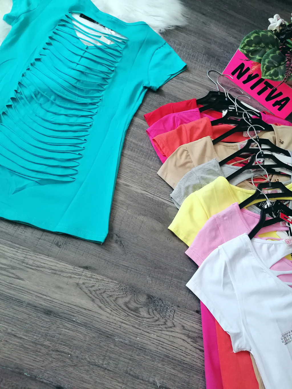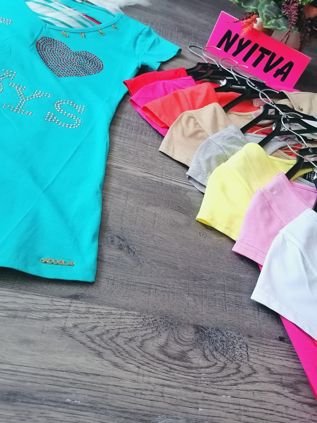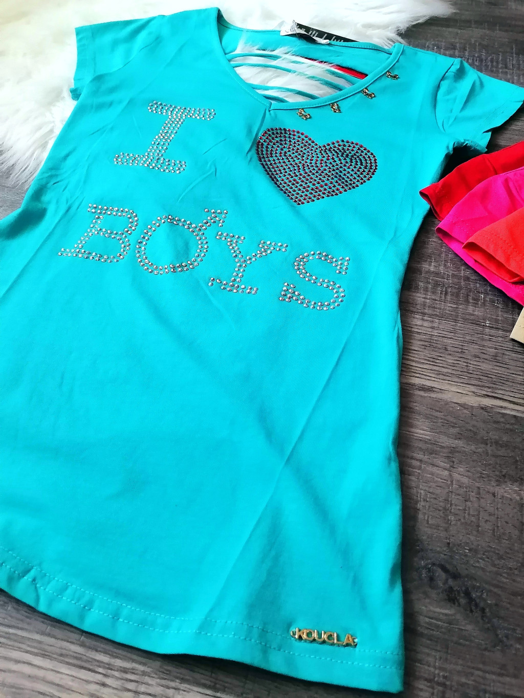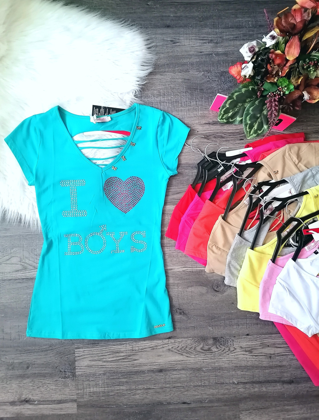 "I LOVE BOYS" feliratos hátán szaggatott strasszos póló / felső