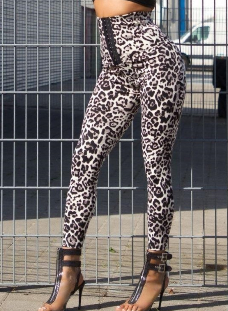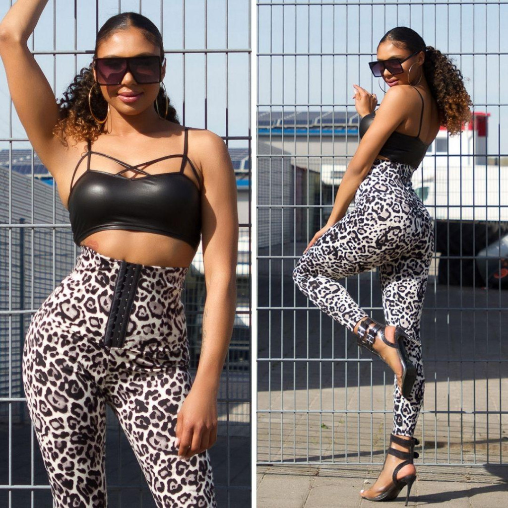 Női alakformáló cicanadrág, kapcsokkal, leopárd mintával, elasztikus anyagból. A leopárd mintás leggings állítható, magas derekú, kapcsokkal záródik 3 féle állásban. Az álltmintás darab a szezon legütősebb trendje, minden gardróbba kötelező darab.