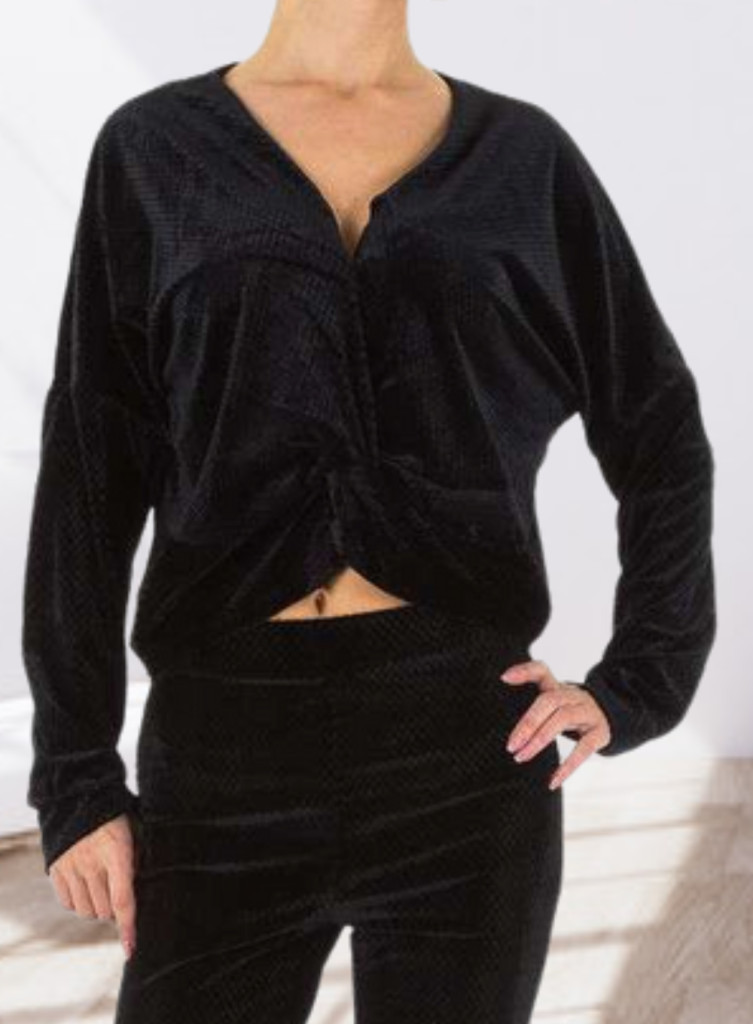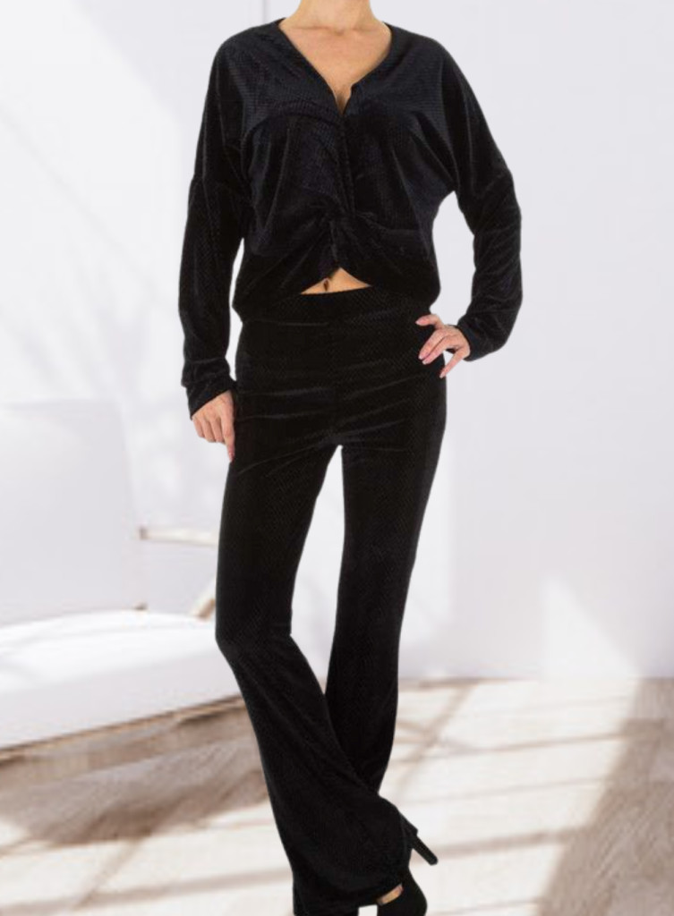 Egyedi plüss anyagú fekete szabadidő együttes