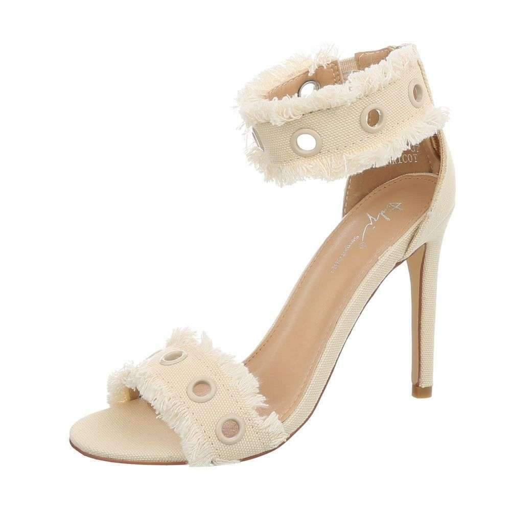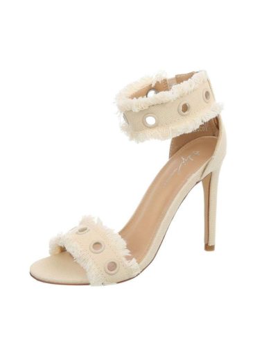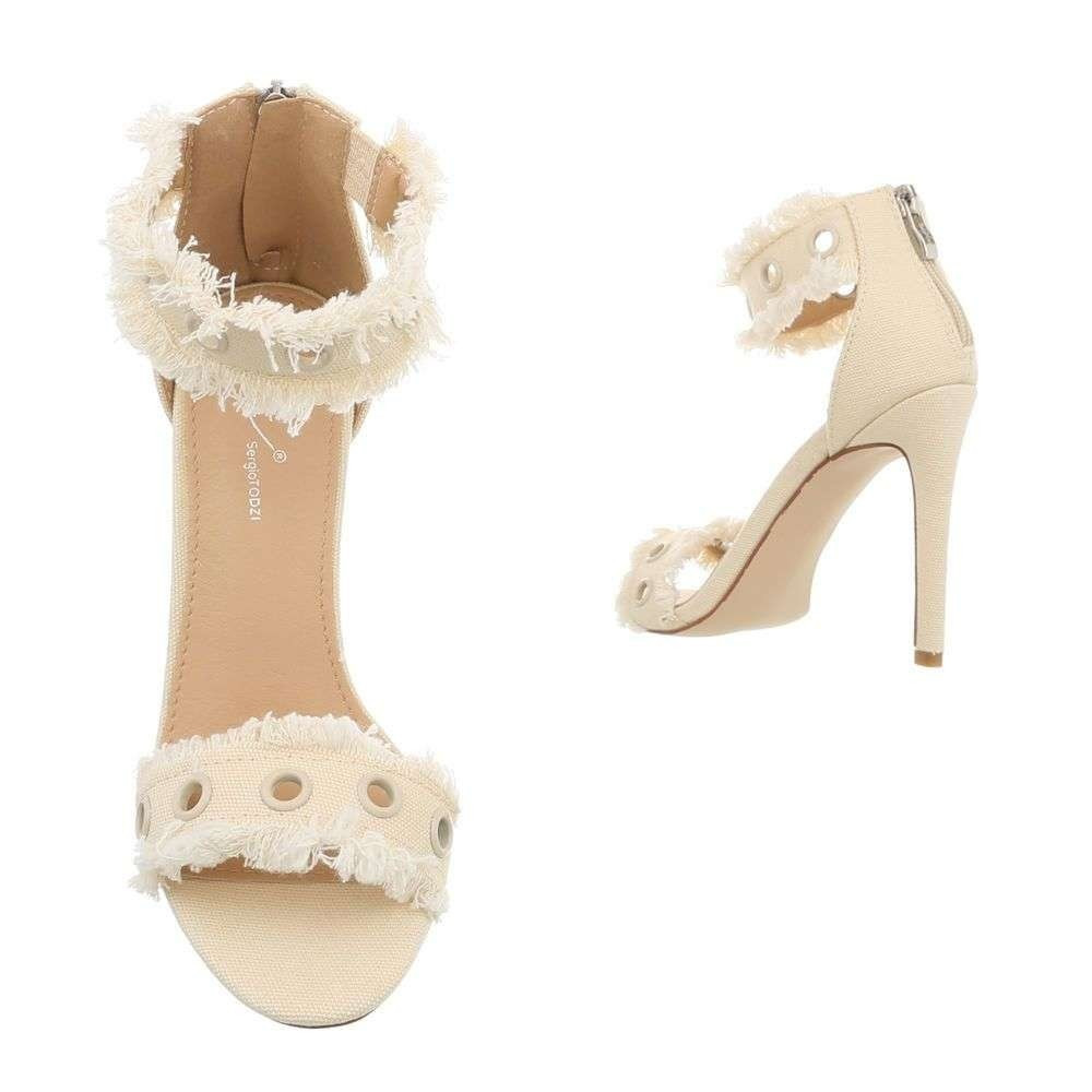 Elegáns bézs magas sarkú szandál szegecses pántokkal (KM-2004)