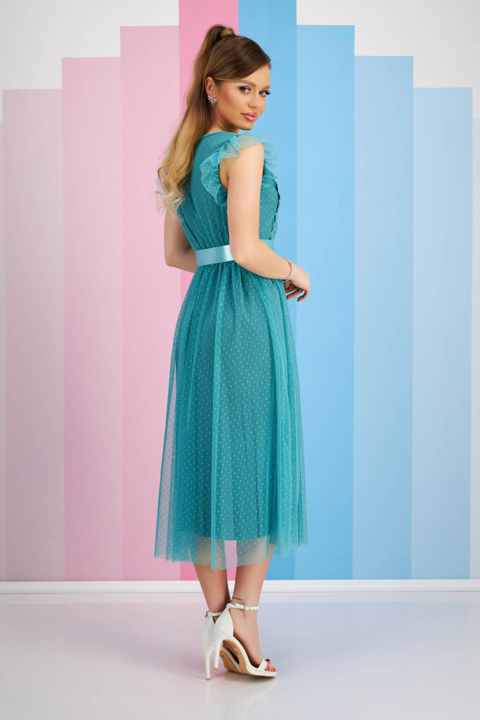 Exkluzív csipkés fodros vállú tüll alkalmi ruha