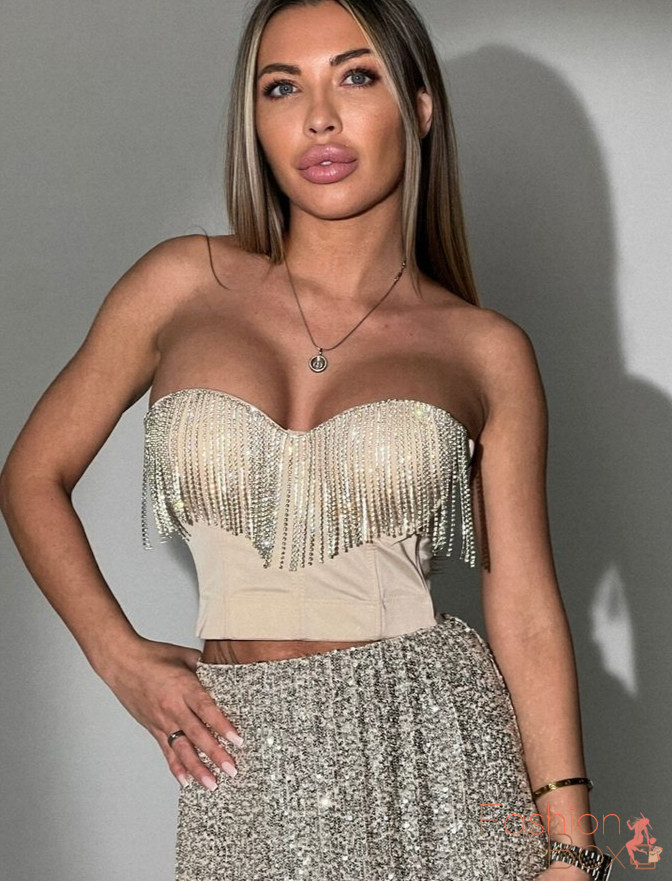 Ki nem szeret csillogni? Ennek a gyönyörű topnak köszönhetően sztárnak fogod magad érezni! Nézd, milyen látványosan néz ki! Hátul több sorban kapcsokkal állítható fazon, ami látvámyosan emeli ki extra kövekkel kísérve dekoltázsod. Ellenálhatatlanul szexi megjelenést kölcsönöz a legegyszerűbb farmerrel kombinálva is. A topot felül teljes egészében üvegkövek borítják, amelyek elbűvölővé varázsolják a ruhát. Viselőjét az est fénypontjává varázsolják szilveszterkor, farsangi bulikon és számos különleges alkalmon, ahol meg akarod mutatni fenomenális alakodat!