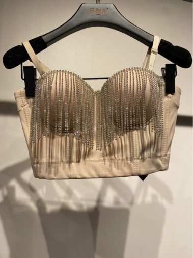 Exkluzív köves bézs míder / kosaras crop top szivacsos mellrésszel és levehető pántokkal