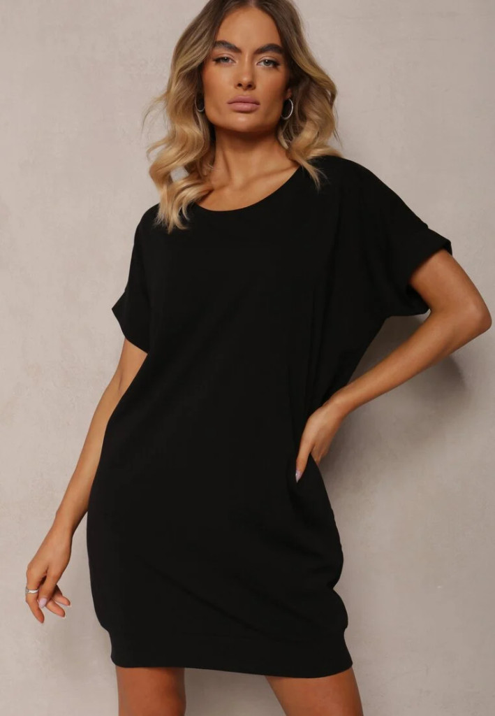 Fekete lezser zsebes pamut ruha / tunika