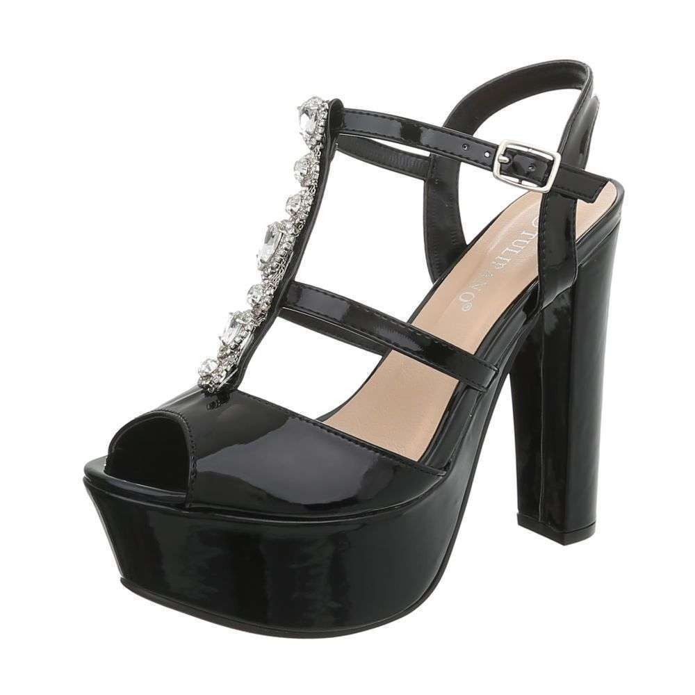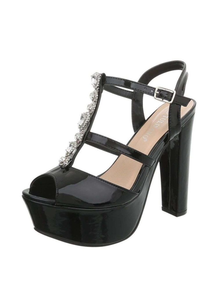 Fekete strasszköves lakk magas sarkú szandál (K2L2905)