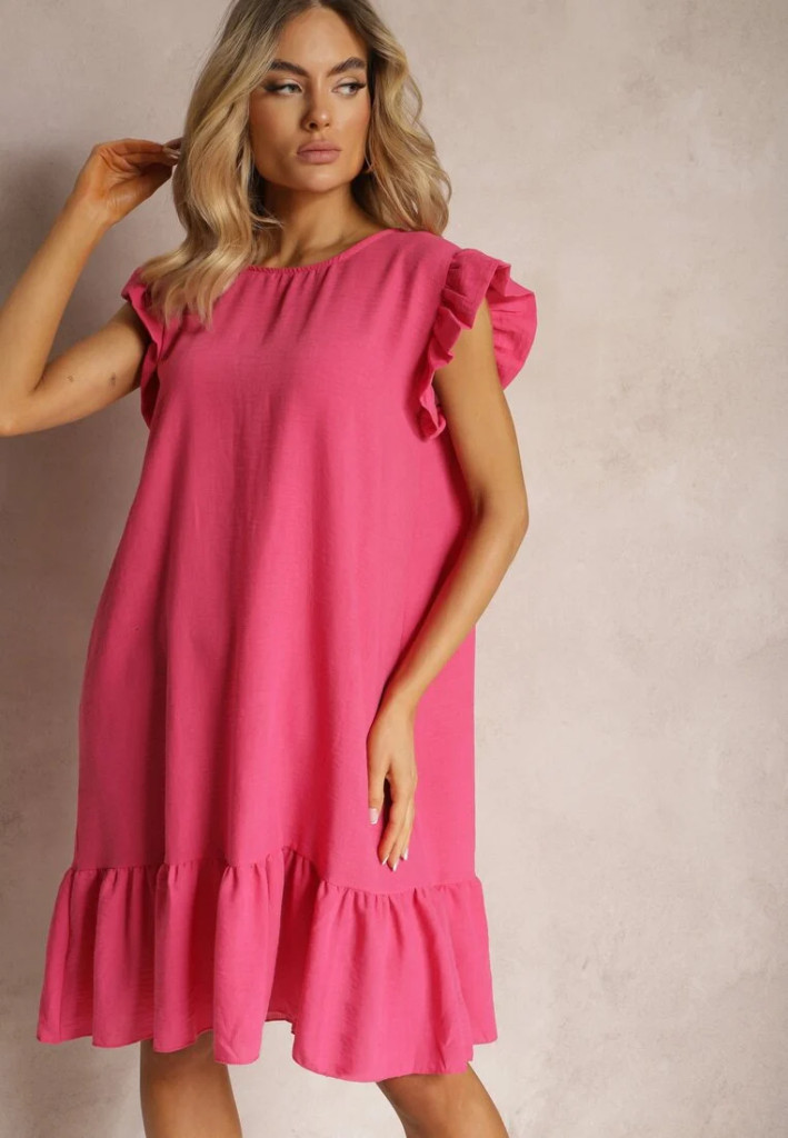 Fedezd fel az A vonalú ruha varázsát, amely könnyedséget kölcsönöz mozdulatainak, fodros vállával pedig minden alakot kiemel. Az elegáns vonal rövid ujjakkal és az alsó finom fodrokkal kellően jellegzetes megjelenést kölcsönöz a mindennapi használatra és a különleges alkalmakra egyaránt. A mérsékelt mélységű kerek nyakkivágás klasszikus, amely soha nem megy ki a divatból. Bokacsizmával és motoros kabáttal kombinálva lezser megjelenést kölcsönöz, magassarkúkkal és finom ékszerekkel pedig az esti események ikonjává változtat.Összetétel: 100% poliészter