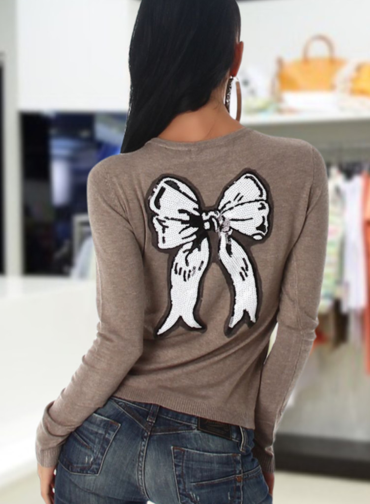 Gombos kötött cappuccino kardigán hátán flitterrel