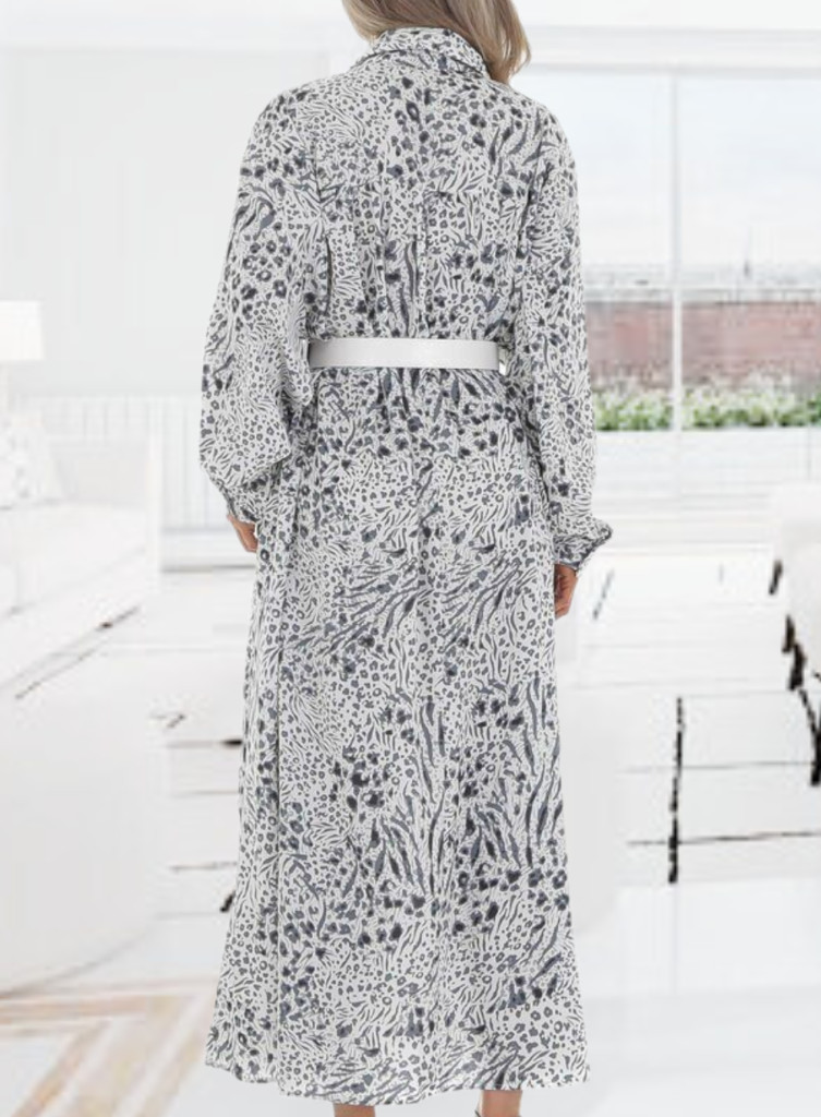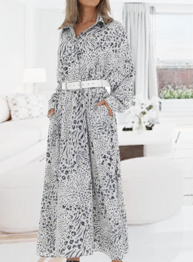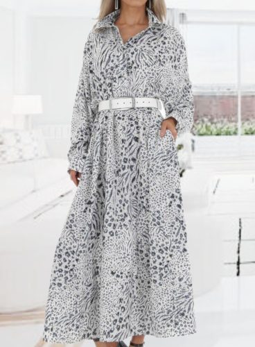 Gyönyörű lezseren elegáns leopárd mintás zsebes maxiruha