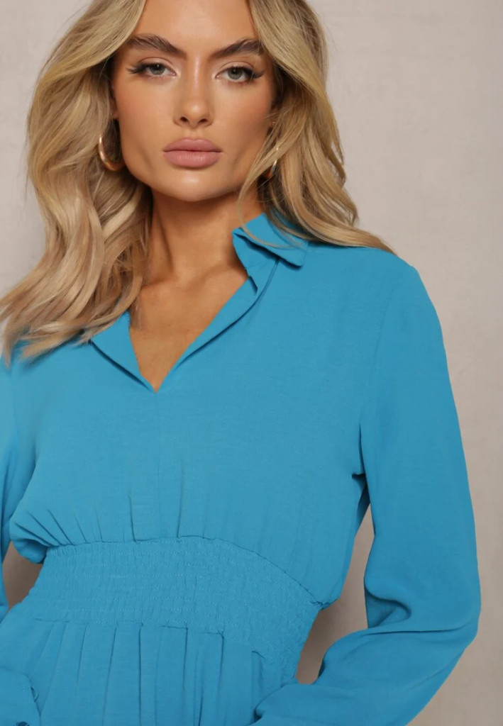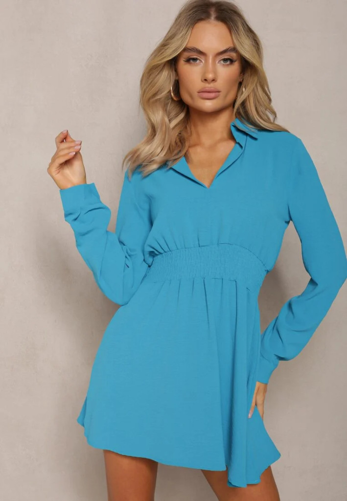 Kék galléros gumis derekú ingruha / miniruha / tunika
