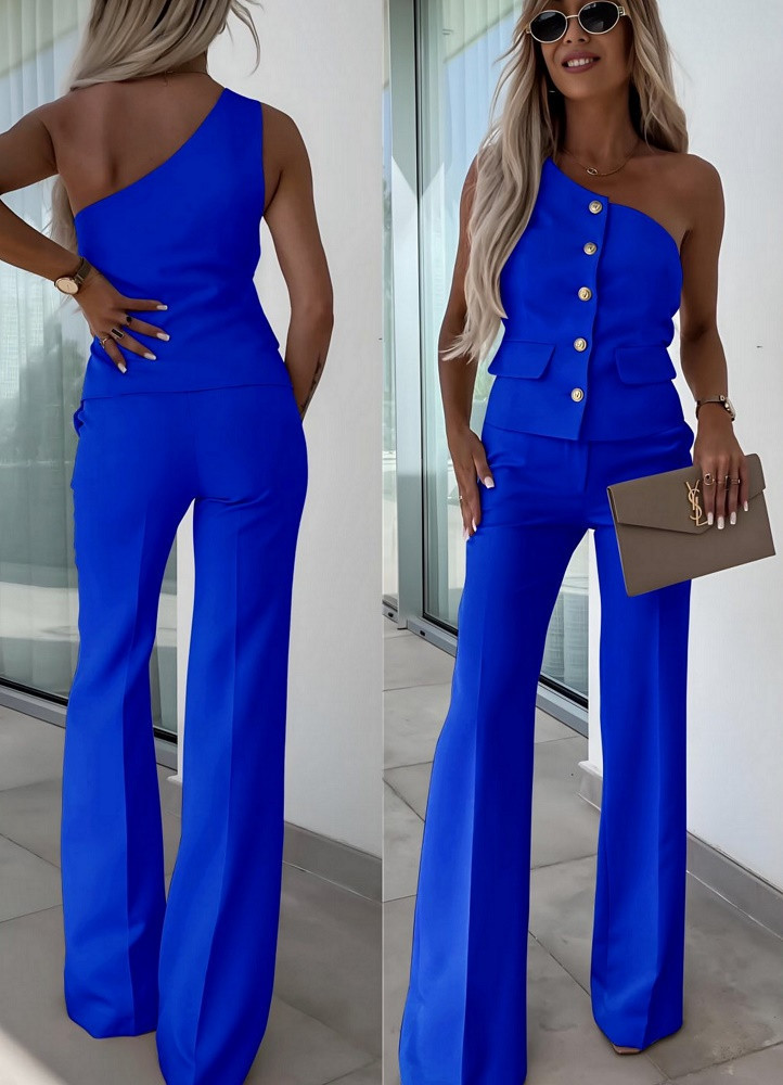 Vagány 2 részes kosztüm szett - félvállas mellény gombokkal + trapéz szárú nadrág