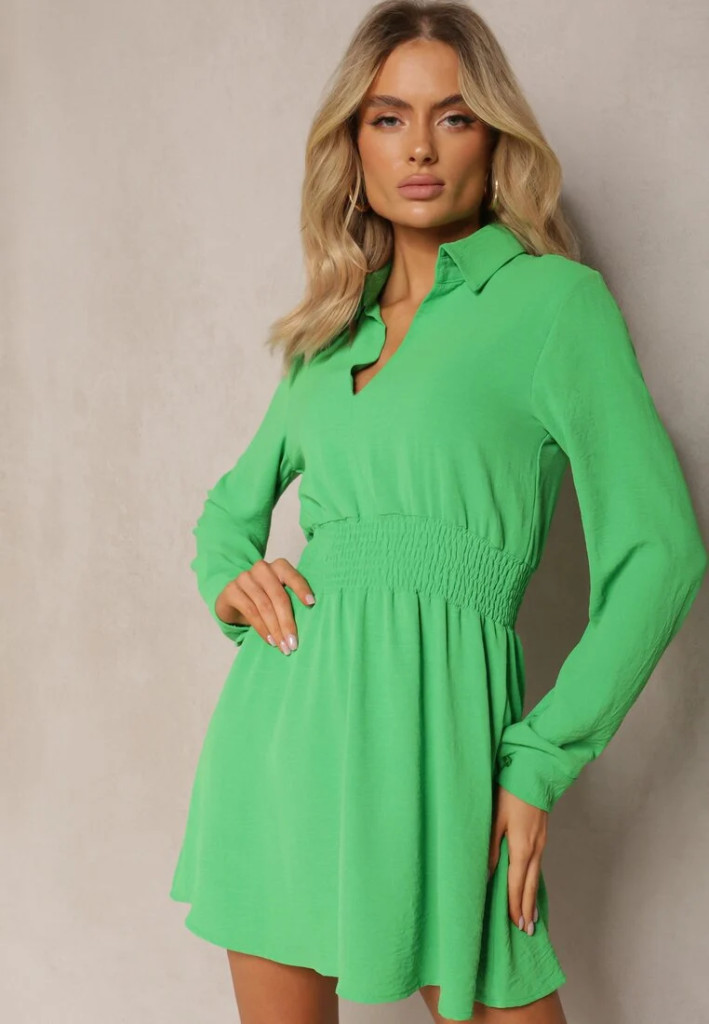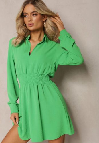 Zöld galléros gumis derekú ingruha / miniruha / tunika