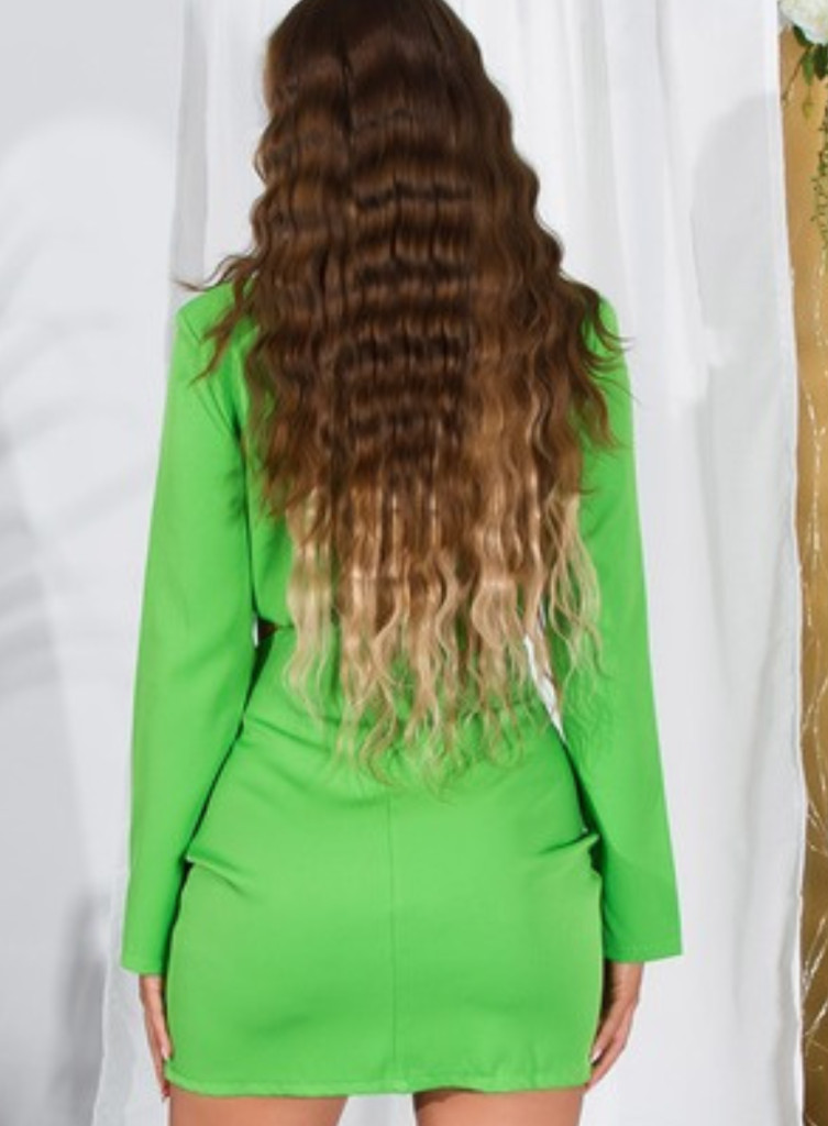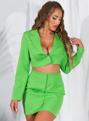 Elegáns blézer ruha elöl nyitott megjelenéssel. A nyitott megoldás és rövidített alsórész tökéletes párosítás, hogy optikailag meghosszabbítsa a lábakat. Bézs nem rugalmas anyagból készült. Tökéletes ruha bármilyen alkalomra, melyet igény szerint egyszerűen kombinálatsz basic vagy akár csipkés ujjatlan blúzzal, trikóval, és azonnal zártabb, konszolidáltabb megejelenést kölcsönöz, amikor azt kívánja meg a helyzet.