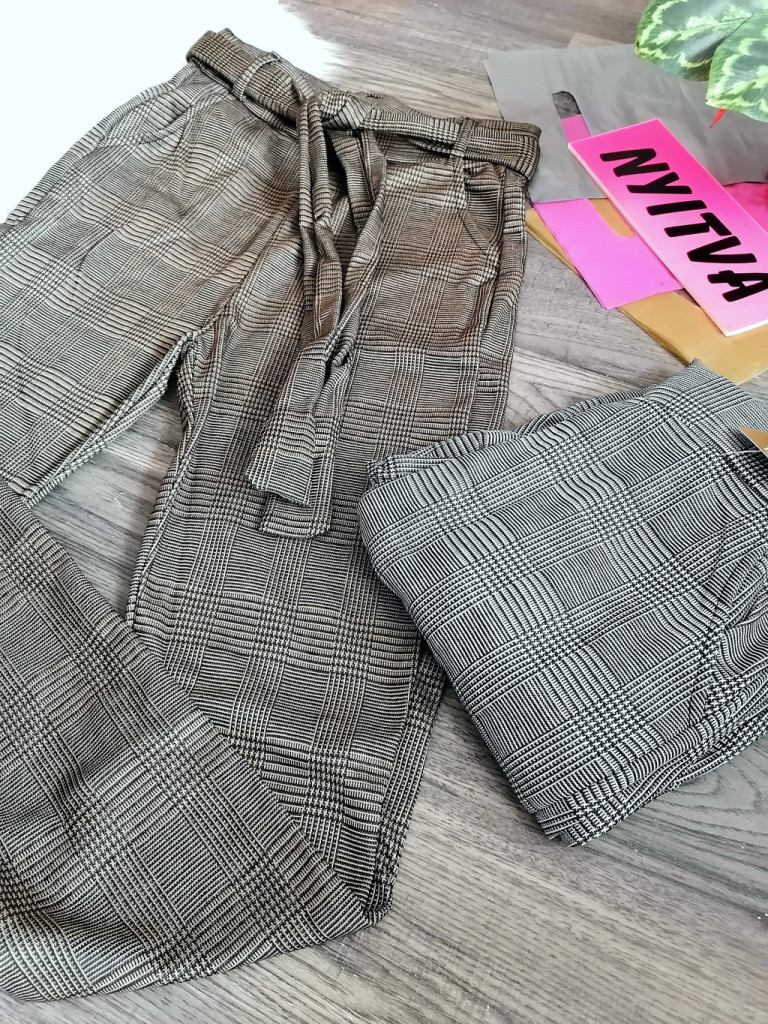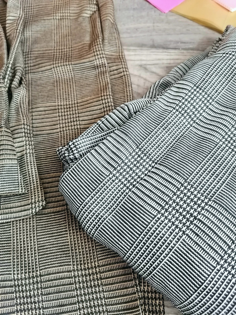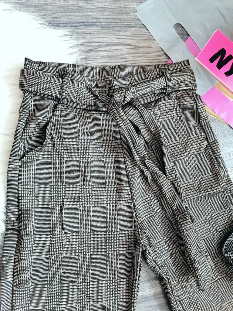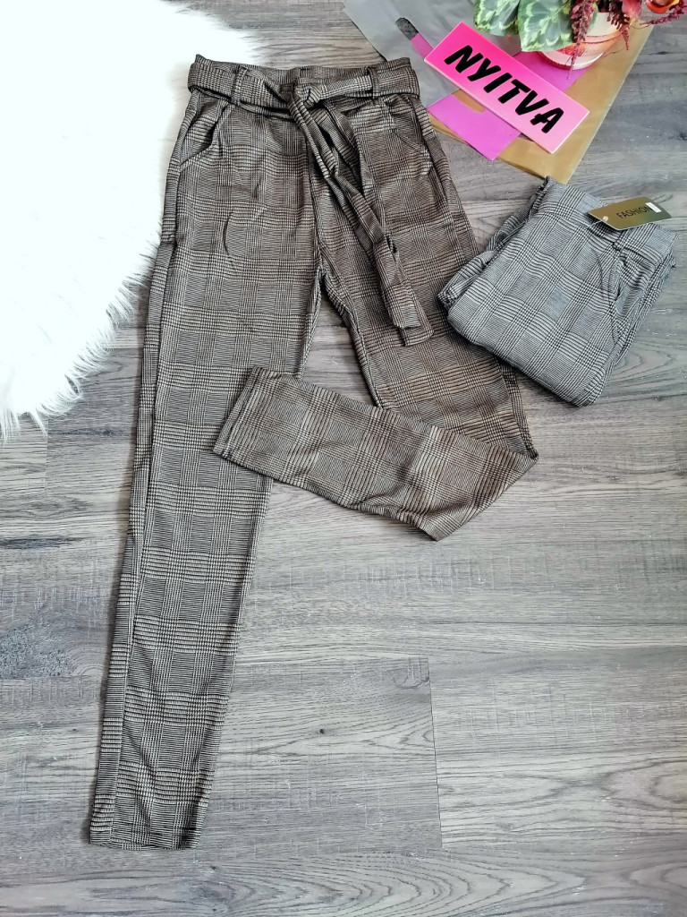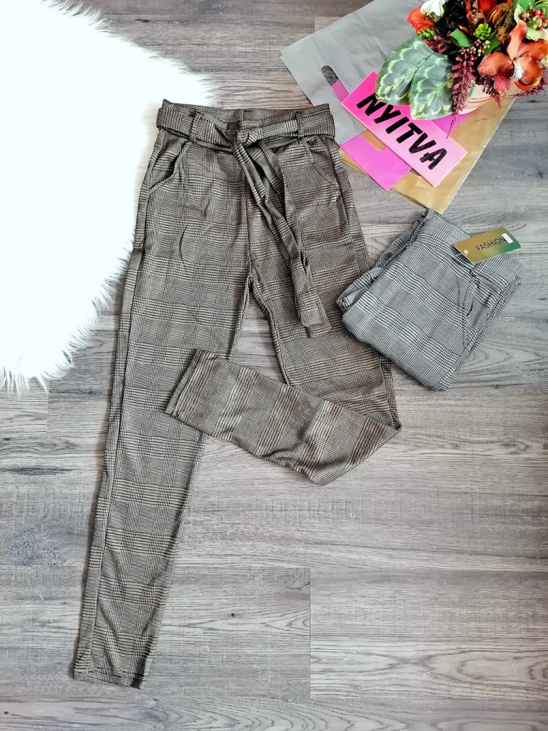 Zsebes kockás magasderekú elegáns nadrág övvel